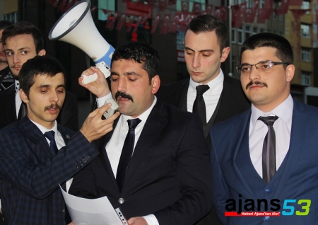 Rize Ülkü Ocakları, Güney Azerbaycan’da İran tarafından zulüm gören Türkmenlere destek vermek için bir basın açıklaması düzenledi. Yurt genelinde eş zamanlı olarak düzenlenen ortak basın açıklamasını Rize Ülkü Ocakları Başkanı İhsan Alkan okudu. Alkan yaptığı açıklamada, “Bu nümayiş Güney Azerbaycan’ı aşmıştır. Soydaşlarımızın sesine ilk destek, hemen yanı başlarından, aynı rejime karşı var olma mücadelesi veren Kaşgay Türkleri’nden gelmiştir. Azerbaycan’da yaşayan soydaşlarımız ise Bakü’de düzenlenen mitingle öz gardaşlarının haklı tepkilerine desteklerini dile getirmişlerdir. Bugün Türk milletinin ve Türk milliyetçilerinin susmayan ve susturulamayan sesi olarak, Ülkü Ocakları olarak soydaşlarımızın sesine ses veriyor, haklı davalarında yalnız olmadıklarını haykırıyoruz. Bugün Ortadoğu’da çıkarları peşinde koşarak bir aktör olmaya talip İran’a çağrımızdır. Aynı kökten beslenen bir zenginlik olan mezhepleri çatışma aracı olarak kullanarak Irak’ta Türkmen soydaşlarımızı birbirlerine kırdırmaya çalışmaktan vazgeç. Suriye’de zulme karşı yürütülen savaşa mezhep savaşı algısı yükleyerek Türkmenlere yaptığın ve taşeronlarına yaptırdığın katliamlara son ver. Güney Azerbaycan’da, Güney Horasan’da ve Kaşkay Türklerine karşı yürüttüğün asimilasyon ve inkar politikasını sonlandır. Senin zulmünden bıkıp haklı tepkilerini ortaya koyan protestocuları hukuk dışı uygulamalarla sindirme faaliyetlerini bir an evvel terk et. Irak ve Suriye bir bütün olarak ele alındığında, oralarda savaşın acılarını en derin şekilde yaşayan mazlumlara vaat ettiğin sözde demokrasi ve hami olma çabaların samimiyetten uzaktır. Zira henüz kendi topraklarında ciddi bir bütünü teşkil eden İran Türklerine devlet eliyle uyguladığın ırkçı ve aşağılayıcı tutum samimiyetine gölge düşürmektedir. Açık çağrımızdır ki eğer samimi iseniz bu despot ve antidemokratik uygulamaları bir an evvel terk etmelisiniz” dedi.