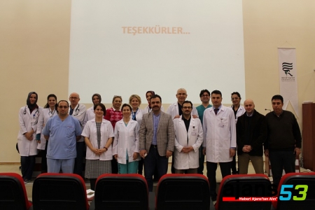 Recep Tayyip Erdoğan Üniversitesi Eğitim ve Araştırma Hastanesi Girişimsel Radyoloji Birimi'nde görevli Yrd. Doç. Dr. Mehmet Fatih İnecikli tarafından verilen konferansa, Hastanesi Yöneticisi Prof. Dr. Hasan Türüt ile sağlık çalışanları katıldı.