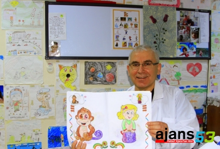 "Duvardaki resimleri izleyen çocuklara özellikle ben de söylüyorum, 'Bir dahaki gelişinde resim yap, gel. Adını, soyadını yaz. Senin de resmini yapıştıralım' diyorum. O da 'Benim de duvarda bir resmim olsun' isteyip bir dahaki gelişinde resimle geliyor. Resimler sayesinde özellikle çocuklarla aramda kuvvetli bir bağ oluştu. Kapıdan girdiklerinde kucağıma koşuyorlar. Beraber balon şişiyoruz. Eğlenerek hastalarımızı tedavi ediyoruz. Hasta psikolojini anlamak oldukça önemli. Biz, hastalarımızla o ortamdan çıkarıp bir sergi sarayında, bir doktor değil de abi, amca edasıyla konuşarak dertleşiyoruz. İstanbul'dan dahi resim gönderen hastalarımız var. 'Bu çorbada benim de tuzum olsun' diyen çok insan var."