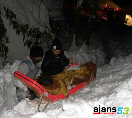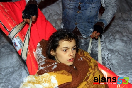 Rize'de kar dolayısıyla yolu kapanan köyde üzerine sıcak su dökülmesi sonucu yanan Zeynep Akbayrak, yaklaşık 15 saat süren çalışmanın ardından, sağlık ekipleri tarafından evinden alınarak, kar paletli ambulansla hastaneye ulaştırıldı.