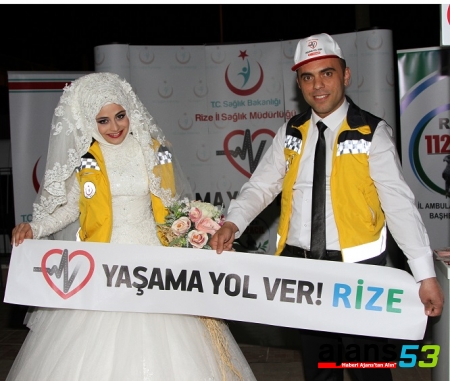 Rize'de ambulans şoförü olarak görev yapan Eyüp Çatan, Sağlık Müdürlüğünce yürütülen "Yaşama Yol Ver" medya kampanyasına destek olmak amacıyla düğüne gelen misafirlere "trafikte ambulans yol verin, 112 acil yardım hattını gereksiz aramayın" diyerek, projeye destek olmalarını istedi.