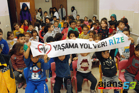 Rize İl Sağlık Müdürlüğü, 112 Acil Servisi'nin gereksiz aranmasını önlemek ve ambulanslara yol verme bilincini yaygınlaştırmak amacıyla düzenlediği ‘Yaşama Yol Ver’ Kampanyası kapsamında Hacere Usta Anaokulu öğrencilerine “Yaşama Yol Ver” projesi kapsamında minik 112 eğitimi verildi.