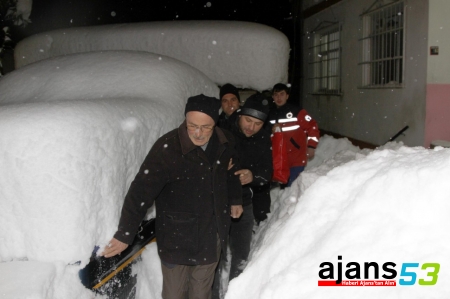 Rize`de kar dolayısıyla yolu kapanan köyde rahatsızlanan Selim Demirel, yaklaşık 6 saat süren çalışmanın ardından, sağlık ekipleri tarafından evinden alınarak, kar paletli ambulansla hastaneye götürüldü.
