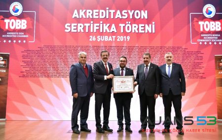 Türkiye Odalar ve Borsalar Birliği’nde Ticaret Bakanı Ruhsar Pekcan, TOBB Başkanı M. Rifat Hisarcıklıoğlu ve TOBB Yönetim Kurulu Sayman Üyesi ve Akreditasyon Kurul Başkanı Faik Yavuz’un katılımıyla gerçekleşen Akreditasyon Sertifika Töreni’nde Rize Ticaret Borsası adına A Sınıfı Akreditasyon Belgesini, Yönetim Kurulu Başkanı Mehmet Erdoğan, Meclis Başkanı Resul Okumuş ve Genel Sekreteri İsmail Kocaman aldı.