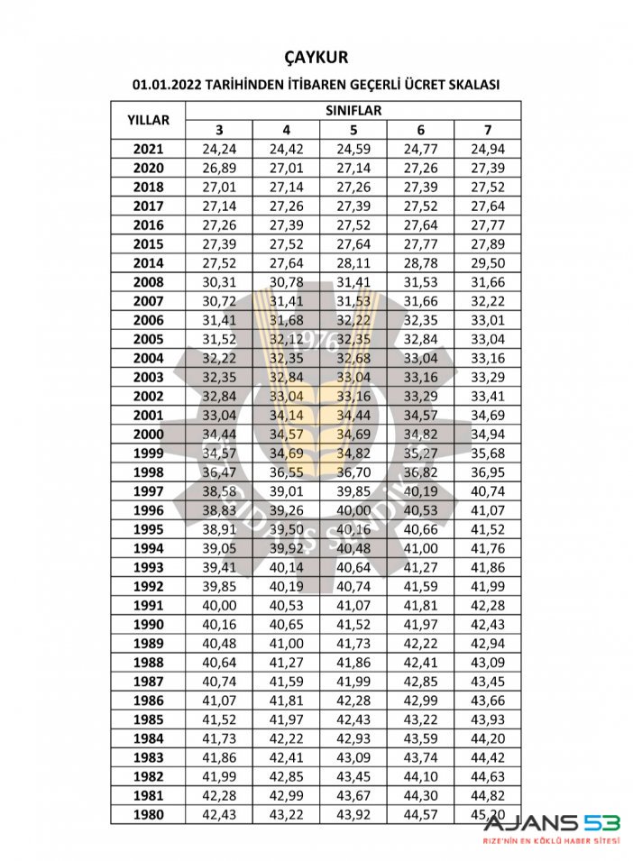 01.01.2022 tarihi itibarı ile yeni saat ücreti skala tablomuz ile sosyal maddelerimizdeki zamlı ücretleri gösteren tablo ektedir.