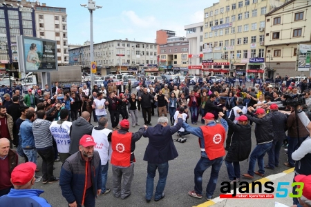 Rize'de "1 Mayıs Emek ve Dayanışma Günü" dolayısıyla bazı sivil toplum örgütleri ve siyasi parti üyelerinden oluşan grup, İsmail Kahraman Kültür Merkezi önünde bir araya geldi.