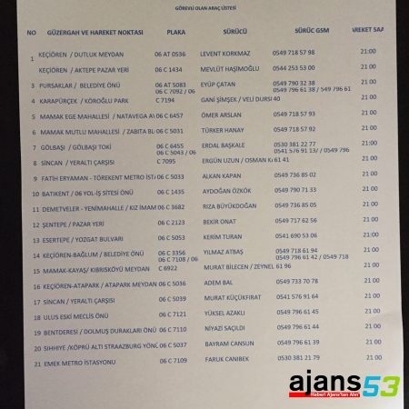 AYDER TUR TARAFINDAN BU AKŞAM SEHRİN DEĞİŞİK YERLERİNDEN KÜLLİYEYE ARAC KALDIRILACAKTIR