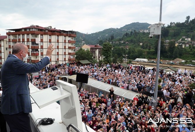Cumhurbaşkanı Recep Tayyip Erdoğan, Rize’de sel felaketinden etkilenen bölgelerde yaptığı incelemelerinin ardından, Güneysu’da halka hitap etti.