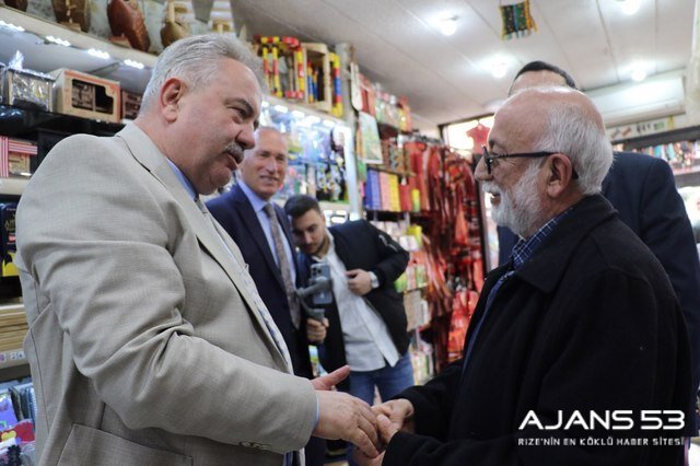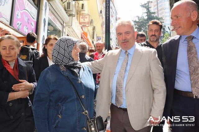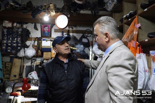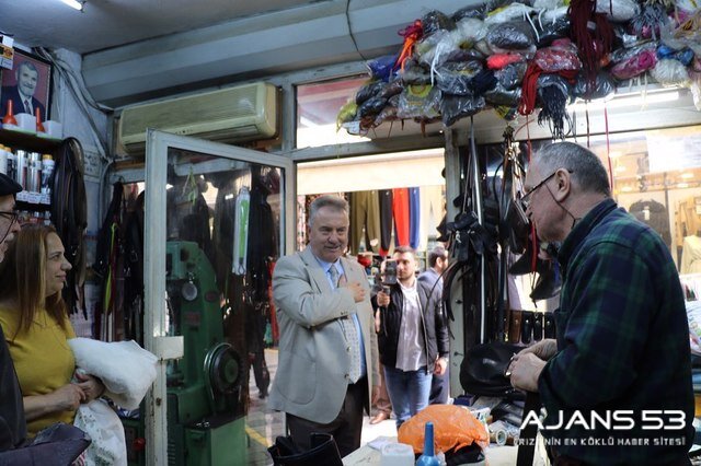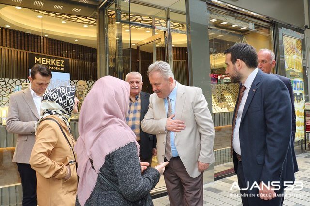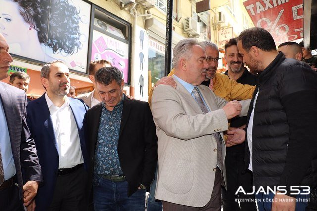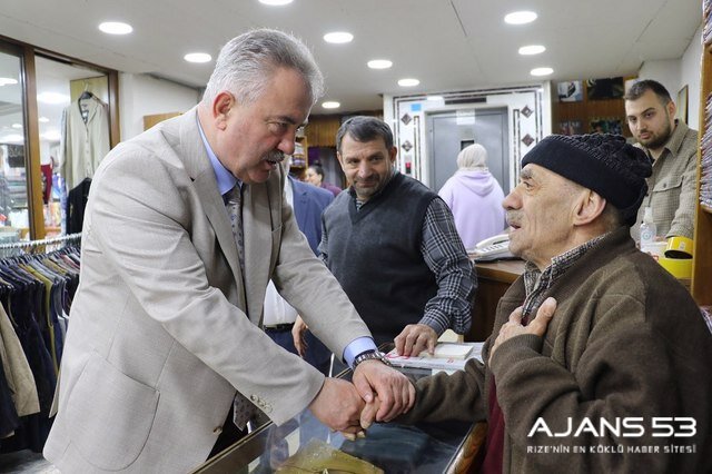 Rize şehir merkezinde esnaf ve vatandaşlarla bir araya gelen Katmer, gençlerle sohbet edip istek görüşlerini dinliyor.