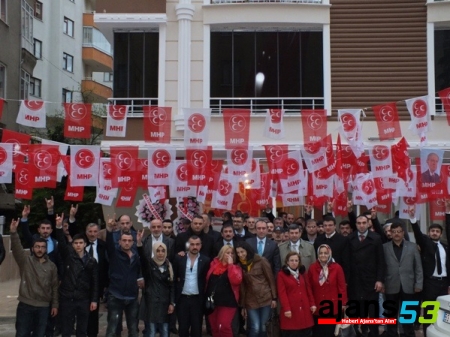 MHP Rize Milletvekili Adayı O. Cem Kazmaz, MHP Rize İl Başkanı Serkan Birben, MHP Rize Kadın Kolları başkanı Naciye Hacıömeroğlu, Ülkü Ocakları Rize il Başkanı Recep Bakırcı’nın açılışını yaptığı seçim ofisinin ilk gününde kalabalık bir partili gurubu açılışta hazır bulundu.