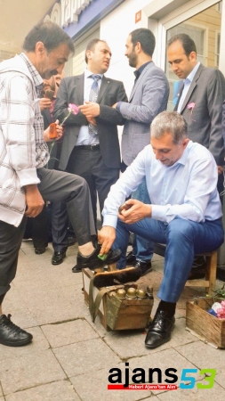 Kartal'da esnaf ziyareti yapan ve halkın sorunlarını dinleyen Külünk yolda rastladığı bir ayakkabı boyacısının ve vatandaşların ayakkabılarını boyadı.