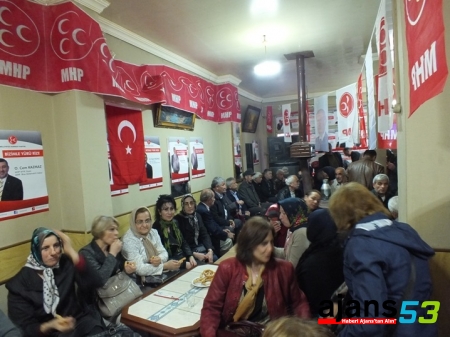 Seçim ofisi açılışında ilk olarak konuşan MHP Pazar İlçe Başkanı Erdoğan Pınar “ Ben bugün burada evinde iki tane üniversiteli kızı olup henüz atamaları yapılmadığı için gelemeyenleri görüyorum, ben burada daha iki gün önce zorla mitinge götürülen orta öğretim öğrencilerinin annelerini görüyorum ama gelemediklerini biliyorum, ben burada 4 yıllık fakülteyi bitirip mühendis olanların Çaykur’da çalışmak için sıraya girenlerin burada olduğunu biliyorum” dedi.