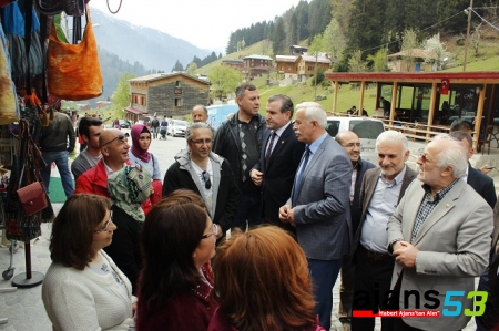 Ayder yaylasında da incelemelerde bulunan Ak Parti heyeti, burada bulunan yerli ve yabancı turistlerle sohbet etti.