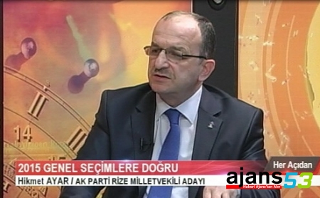 Ak Parti Rize Milletvekili Adayı Hikmet Ayar, kendilerine yöneltilen Cumhurbaşkanı Recep Tayyip Erdoğan’ın arkasına sığınarak siyaset yapıyorsunuz eleştirilerine yönelik olarak, katıldığı televizyon programında, “Recep Tayyip Erdoğan’ın ilkeleri doğrultusunda siyaset yapmaya devam edeceğiz” ifadelerini kullandı.