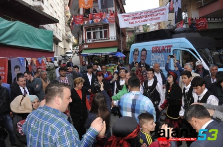 Halk oyunları gösterisinin yapıldığı açılış töreninde Ak Parti Milletvekili Adayları Hikmet Ayar ve Osman Aşkın Bak vatandaşlarla horon oynadı.