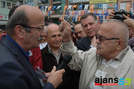 Basın mensuplarının soru sorduğu sırada mikrofonu alan bir vatandaş, "Ben halkım. Söyleyeceklerimden dolayı özür diler konuşmanızdan dolayı tebrik ederim. Sizin milletvekili adayınız Fikri Sağlar, bundan bir süre önce Rizelinin canı ciğeri olan Reisicumhurumuz Recep Tayyip Erdoğan için 'Onun Müslüman olduğuna inanmıyorum' dedi. Ben bunu kınıyorum" şeklinde tepki gösterdi. Bunun üzerine Bekaroğlu, "Neyse" diyerek mikrofonu vatandaşın elinden aldı.