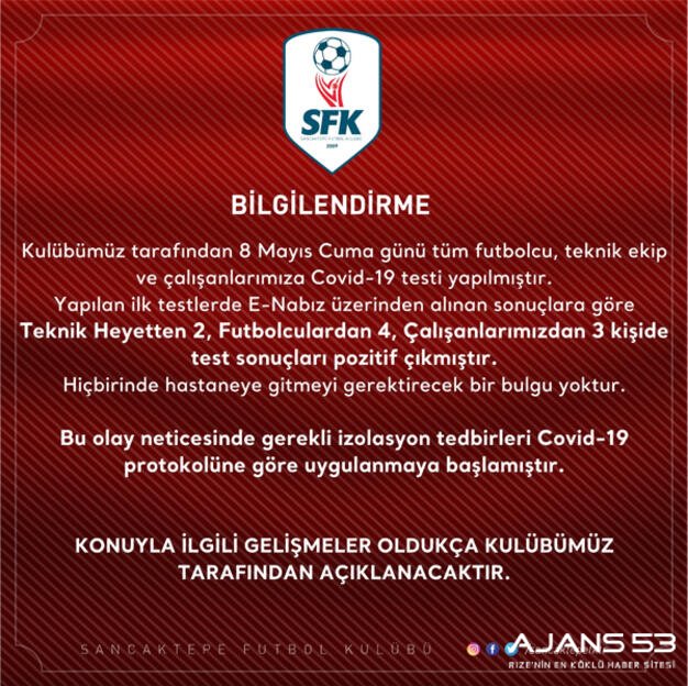 Test sonuçlarına göre; teknik heyetten 2, çalışanlardan 3, futbolculardan ise 4 kişi koronavirüse yakalandı.