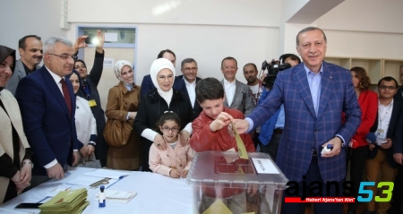 Cumhurbaşkanı Recep Tayyip Erdoğan eşi Emine Erdoğan, damadı Enerji ve Tabii Kaynaklar Bakanı Berat Albayrak, kızı Esra Albayrak, torunları Ahmet Akif ve Emine Mahinur ile birlikte oyunu kullanmak üzere Saffet Çebi Ortaokulu'nda geldi. Vatandaşların sevgi gösterileri ile karşılanan Erdoğan, sandık görevlileri ile selamlaştıktan sonra oy pusulasını alarak 3248 nolu sandıkta oyunu kullandı. Cumhurbaşkanı Erdoğan'ın oy zarfını torunu Ahmet Akif, eşi Emine Erdoğan'ın oy zarfını ise diğer torunu Emine Mahinur sandığa attı.