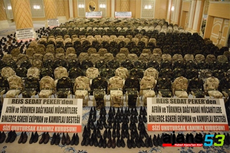 ''REİS SEDAT PEKER’den Pkk, Pyd ve Esat’ın güçleriyle savaşan AFRİN ve TÜRKMEN dağındaki mücahitlere binlerce adet askeri yazlık kamuflaj, bot ve ekipman desteği.''