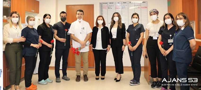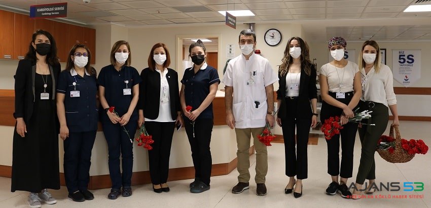 Genel Müdür Dr. Sermet Kileci, Genel Müdür Yardımcısı Rabia Ağar, Mesul Müdür Dr. Suat Özerbaş, Gece Müdürü Uğur Demir, Başhemşire Ceylan Özyılmaz ve İnsan Kaynakları Yöneticisi Nazlı Durakoğlugil, Hemşirelik Haftası etkinlikleri kapsamında; görev yerlerindeki hemşirelere karanfil takdim ettiler.