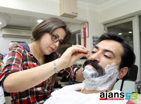 Denizli’de çalıştıkları kadın kuaföründe, kadınların kaprislerinden sıkılan iki kadın, erkek berberinde çalışmaya başladı. Berberde sakal tıraşı dahil her işi yapan kadınlar, işlerinden memnun.