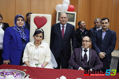 Artvin’in Ardanuç ilçesindeki Aşık Efkari Kültür Salonunda düzenlen düğün törenine Artvin Valisi Ömer Doğanay eşi Esma Doğanay , Ardanuç Kaymakamı Abdil Koç, Ardanuç Belediye Başkanı Yıldırım Demir, Artvin Engelliler Derneği Başkanı Hatice Nur Ersöz, Ardanuç Engelliler Derneği Başkanı Gönül İstanbullu, genç çiftlerin aileleri, yakınları ile Ardanuç halkı katıldı.