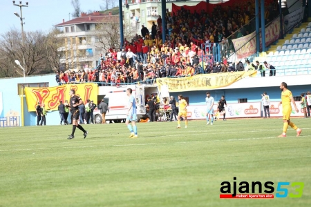 Yaklaşık 200 kişilik grubla Pazar'a gelen sarı - Kırmızılı takımın taraftarları Rizeli futbolcu Emrah'ın attığı gol sonrası bulundukları tribünden aşağıya doğru yüklenme sonucu çöktü. 3 Kişinin yere düştüğü olayda bir Göztepe taraftarı ağır yaralandı.