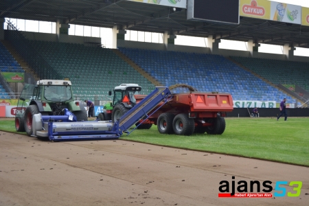 Altyapı yatırımlarına büyük önem veren kulübümüz Çaykur Didi Stadının zeminini hibrit çime dönüştürmek için çalışmalara 18 Haziran Cumartesi günü başladı. Mevcut zeminimizi 4 santimetreden sıyırıp eski 8 yıl boyunca kullandığımız çimlerimizin sahadan tamamen ayırılması işleminin başlandığı stadyum zemini Ağustosun ilk haftasında hazır olması planlanıyor.