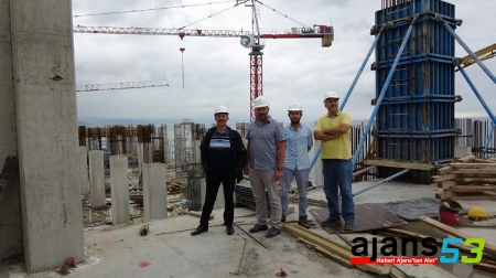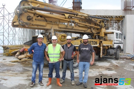 AHES İnşaat Yönetim Kurulu Başkanı Süleyman Ekşi beton mikserinin kata çıkarılması sırasında çalışanlardan bilgi aldı. AHES İnşaat Proje Müdürü Ali Kemal Yılmaz, beton pompalarının döküm yapacakları kata ulaşamaması nedeniyle sıkıntılar yaşadıklarını belirterek "Pratik bir çözüm yolu bulduk. 27 tonluk beton mikserini vinçle kata çıkararak istasyon pompa oluşturduk. Bu kattan da 55 metre yüksekliğe betonu kolayca döktük." dedi.