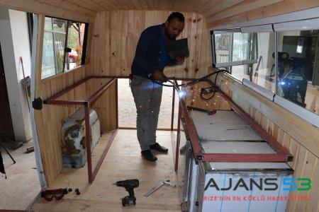 Trafikten çekilen araçları sahiplerinden satın alan Akbaş, 5 kişilik bir ekiple araçların söküm ve boyama işlemlerinin yanı sıra demir profil ve ahşapla iç dekorasyonunu yapıyor.