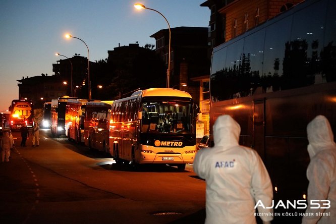 Türk vatandaşları, sağlık kontrolünün ardından, polis ve AFAD ekipleri eşliğinde, yoğun güvenlik önlemleri altında otobüslerle Rize'deki Kredi ve Yurtlar Kurumuna bağlı Devlet Hatun Yurduna getirilerek yerleştirildi.
