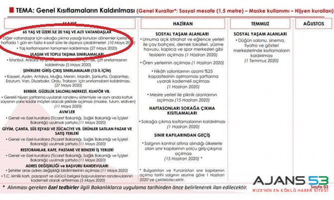 Cumhurbaşkanlığı normalleşme takviminin detaylarını açıkladı. Cumhurbaşkanlığı tarafından yayınlanan normalleşme planında takviminde yer alan bilgilere göre, 27 Mayıs 2020’de sokağa çıkma yasağında yaş sınırlandırılması kalkacak. 1 Haziran'da ise sokağa çıkma kısıtlaması tamamen kaldırılacak.