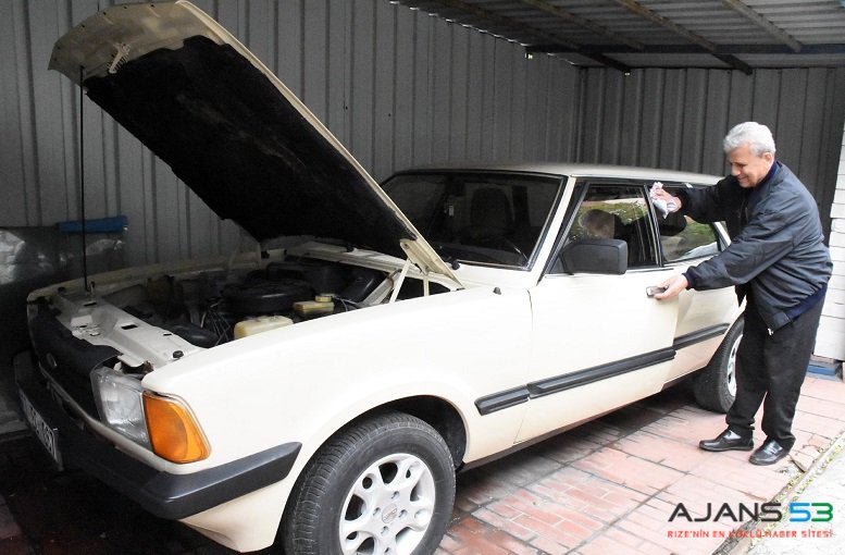 Zonguldak'ta yaşayan İsmail Tan, çok sevdiği arkadaşının 40 yıl önce İngiltere'den satın alıp getirdiği 1980 model Ford Taunus marka aracına gözü gibi bakıyor.