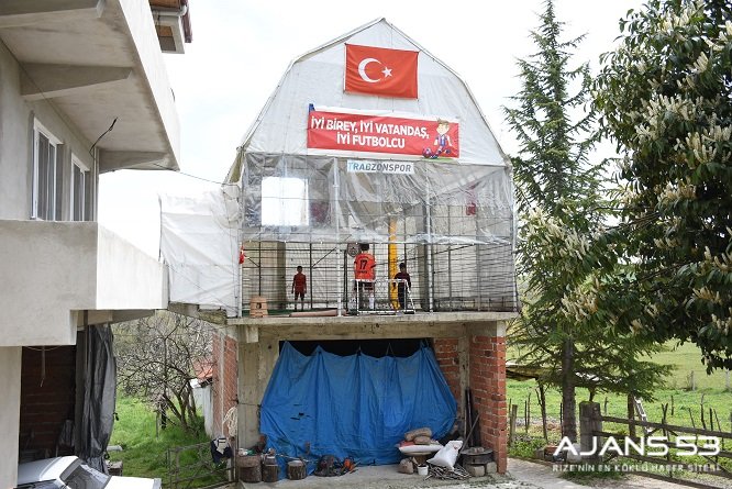 Yaklaşık 15 bin lira harcayarak halı yıkama ve kışlık yiyecek hazırlamada kullandıkları 65 metrekarelik garaj üzerini, branda, aydınlatma, yer halısı ve kale direkleriyle 2 aylık süreçte kapalı halı sahaya dönüştüren Fındık, dışına Türk bayrağı ve "İyi birey, iyi vatandaş, iyi futbolcu" yazısı da astı.
