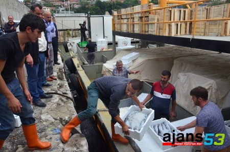 Bu sene palamutun bol olduğunu ifade eden Rize Artvin Su Ürünleri Başkanı Barış Zaman, yaklaşık 20 ton palamut tutuklarını ifade etti. Vatandaşların balık yiyebilmeleri için ucuz verdiklerini ifade eden Zaman, “Bollukta biz fazla para kazanamıyoruz ama bu işin iki tarafı var vatandaşında balık yemesi gerekiyor. Ucuz oldukça vatandaşta yiyecek. Şu anda buradan çıkan balık Türkiye’de yenen en doğal balıktır. Et, tavuk gibi ürünlerde bir sürü oynama oluyor ama bu Allah’ın yarattığı bir varlık bizde tutuyoruz vatandaşımızda yesin istiyoruz. Kilimli üzerinde aldık. Yaklaşık 18-20 ton civarında bir balık yakaladık. Bu balıkları kara yoluyla İstanbul’a göndereceğiz. Rize’den geldik. 6 gündür buralardayız. Dün hava oldukça sertti gündüz açılamadık limana sığındık. Akşam hava biraz gevşeyince denize açıldık. Allah’a şükür bol balık yakaladık” şeklinde konuştu.